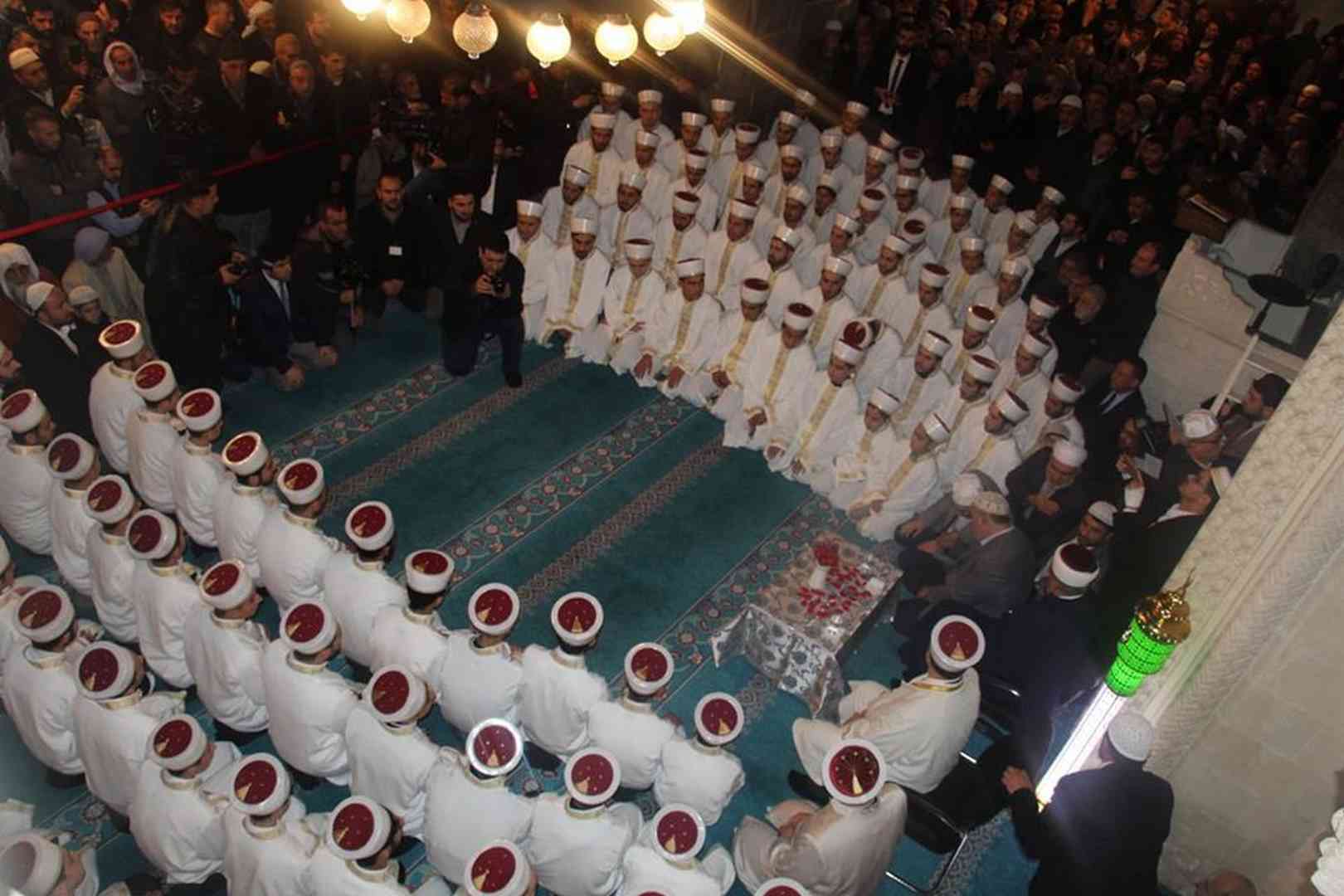 Hafızlar, açılış ve selamlama konuşmalarının ardından İl Müftüsü Yavuz Selim Karabayır ile el ele tutuşarak salavatlar eşliğinde tören alanına geldiler.