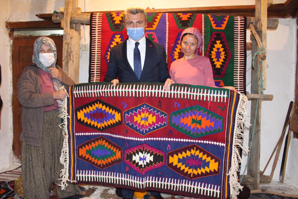 Vatandaşlar ile bir araya gelen Kaymakam Şaban Arda Yazıcı, 1000 yıllık yaşayan kültür mirası Barak Kilimi ile ilgili incelemelerde bulundu.