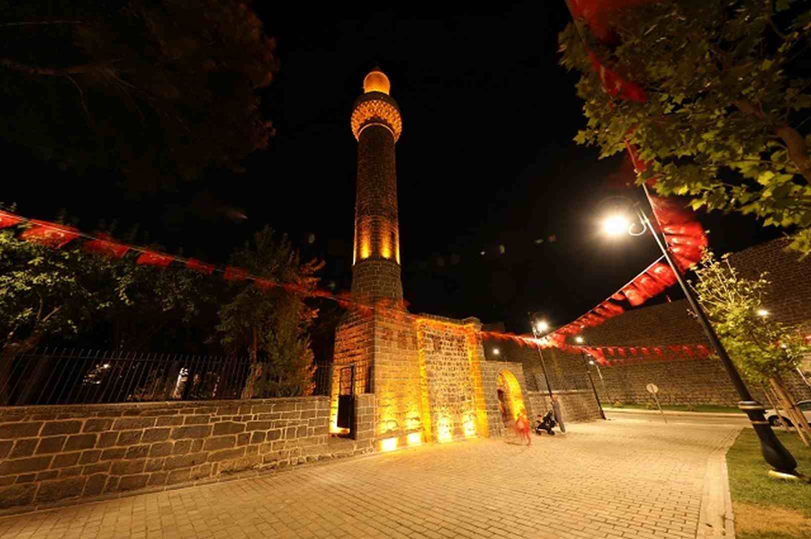 DİYARBAKIR’IN SEMBOLLERİNDEN KURŞUNLU CAMİ IŞIKLANDIRILDI