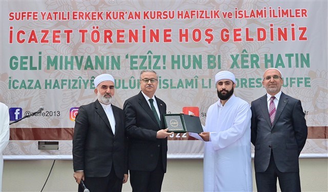 Hafızların ve İslam ilimleri noktasında öğrencilerin yetiştirilmesinde emeği geçenlere teşekkür eden Vali Su, daha sonra 136 öğrenciyi temsilen 2 öğrenciye icazet belgelerini verdi.