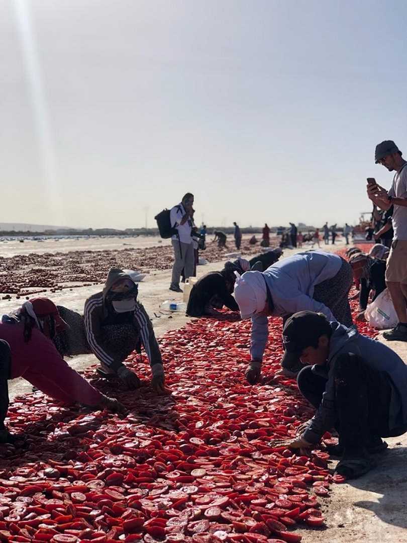 200 dönümlük çok geniş bir alana serilen ve ilginç görüntüler oluşturan domates kurutmasına ilk kez şahit olan Fotoğraf sanatçıları, bol bol fotoğraf çekti.