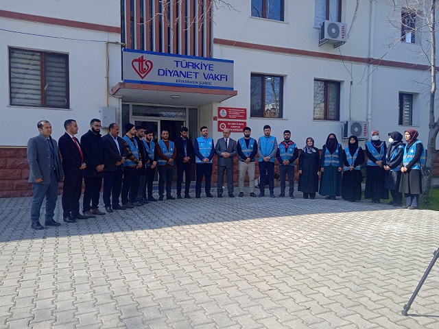 Diyarbakır İl Müftüsü Lütfü İmamoğlu Deprem Bölgesine gidecek olan görevlilerimizin uğurlama programına katıldı. İl Müftüsü İmamoğlu, “6 Şubat’ta Kahramanmaraş merkezli bir deprem oldu. Bu deprem 11 ilde hissedildi ve binalar hasar gördü. Bu hasar sonucunda maalesef 44 binin üzerinde insanımızı kaybettik. Dolayısıyla, görevlilerimiz gerek Diyarbakır’da gerekse depremin etkisinin hissedildiği diğer illerde yoğun bir çalışma içerisinde oldular. Özellikle Diyarbakır’dan Adıyaman’a bay ve bayan din görevlileri ve din gönüllüsü kardeşlerimizi gönderdik. Deprem bölgesindeki insanlarımızın bir nebze de olsa dertlerine deva olabildiysek ve manevi rehberlik yapabildiysek bu bizim için bir mutluluk kaynağı olacaktır. Kardeşlik böyle günlerde belli olur, kardeşliği normal zamanlarda herkes yapabilir. Ancak, bir kardeşimizin başına bir bela ve musibet geldiğinde kardeşimize destek vermemiz lazım. İşte o gün, gerçek Müslümanlığımız ortaya çıkar. Bu vesileyle hamdolsun gerek Diyarbakır’da bulunan depremzede kardeşlerimize gerekse diğer illerimizde bulunan depremzede kardeşlerimize elimizden geleni yaptık, bundan sonra da yapmaya devam edeceğiz.” dedi.