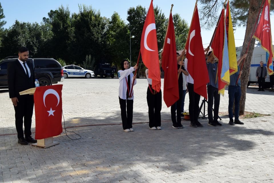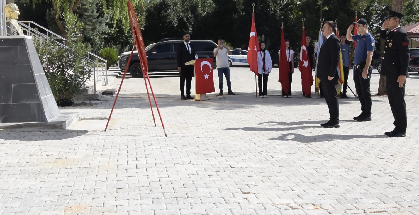 Kutlama programı, İlçede yeni hükümet konağı yapım süreci devam ettiğinden, Kaymakamlığın geçici olarak taşındığı İlçe Emniyet Amirliği’nin bahçesinde gerçekleşti.