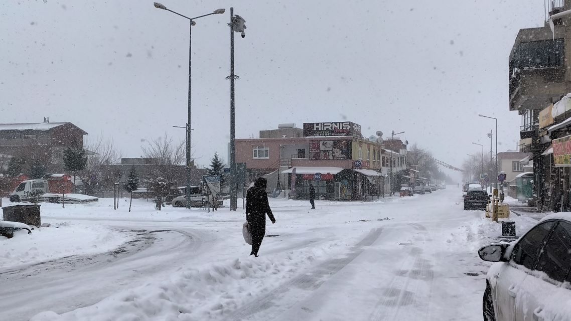 Diyarbakır’ın Dicle İlçesinde yağan kar ilçeyi beyaza bürüdü.