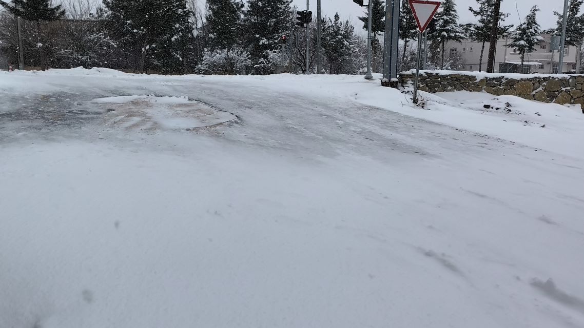 Buzlanmanın olduğu yerlerin üzerine kar yağmaya devam edince bazı yerler buz pisti gibi kaygan bir zemine dönüştü.